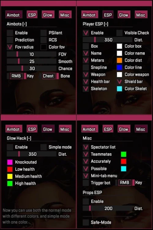 - Safe Mode - safe mode, the aimbot turns off automatically if spectators are watching you