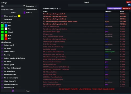- Chams All Items - activate chams showing all items (the color is set depending on the selected filter)