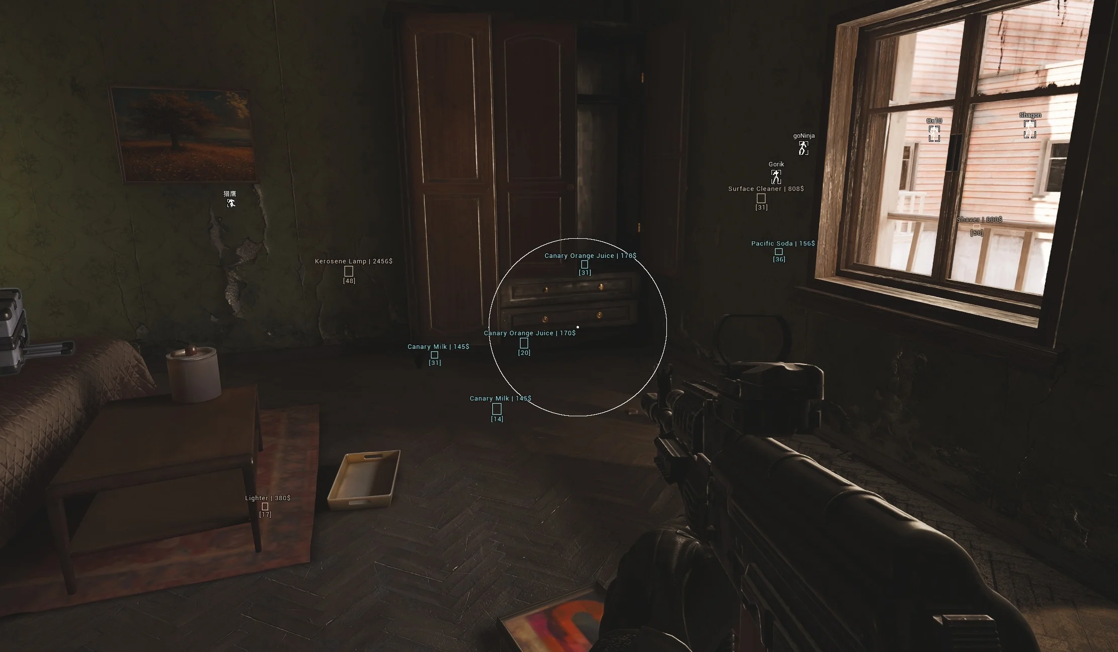 - Corpse ESP - показывать трупы, их содержимое и стоимость