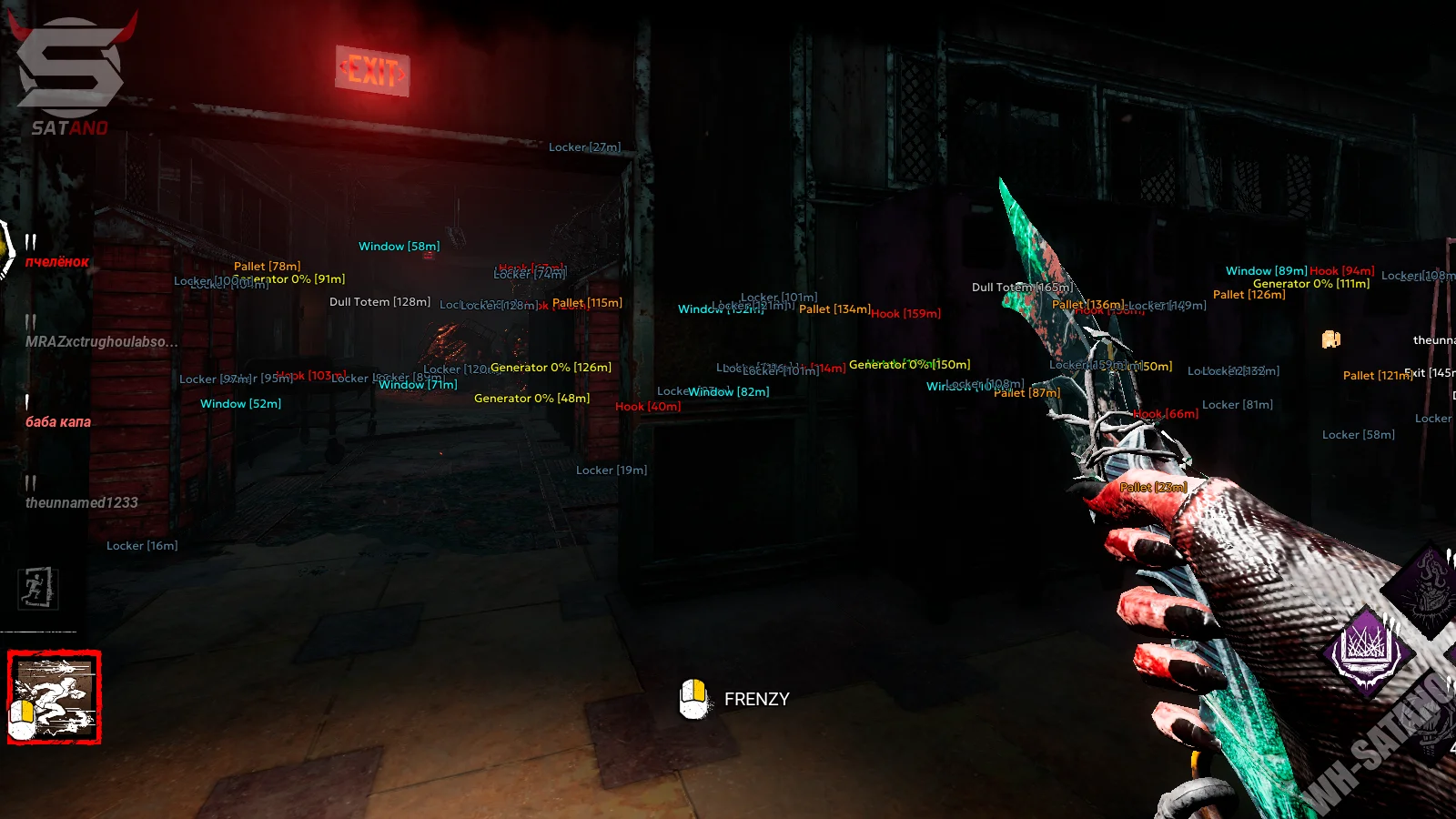 - Generators – отображает генераторы на карте, позволяя быстро находить цели для починки или патрулирования