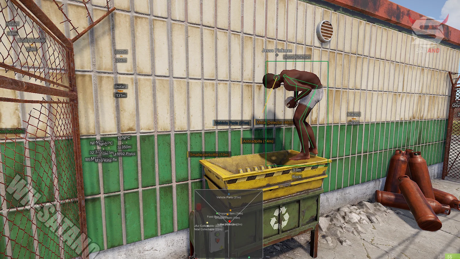 - Подробный ESP: игроки, NPC, ресурсы, контейнеры и объекты мира