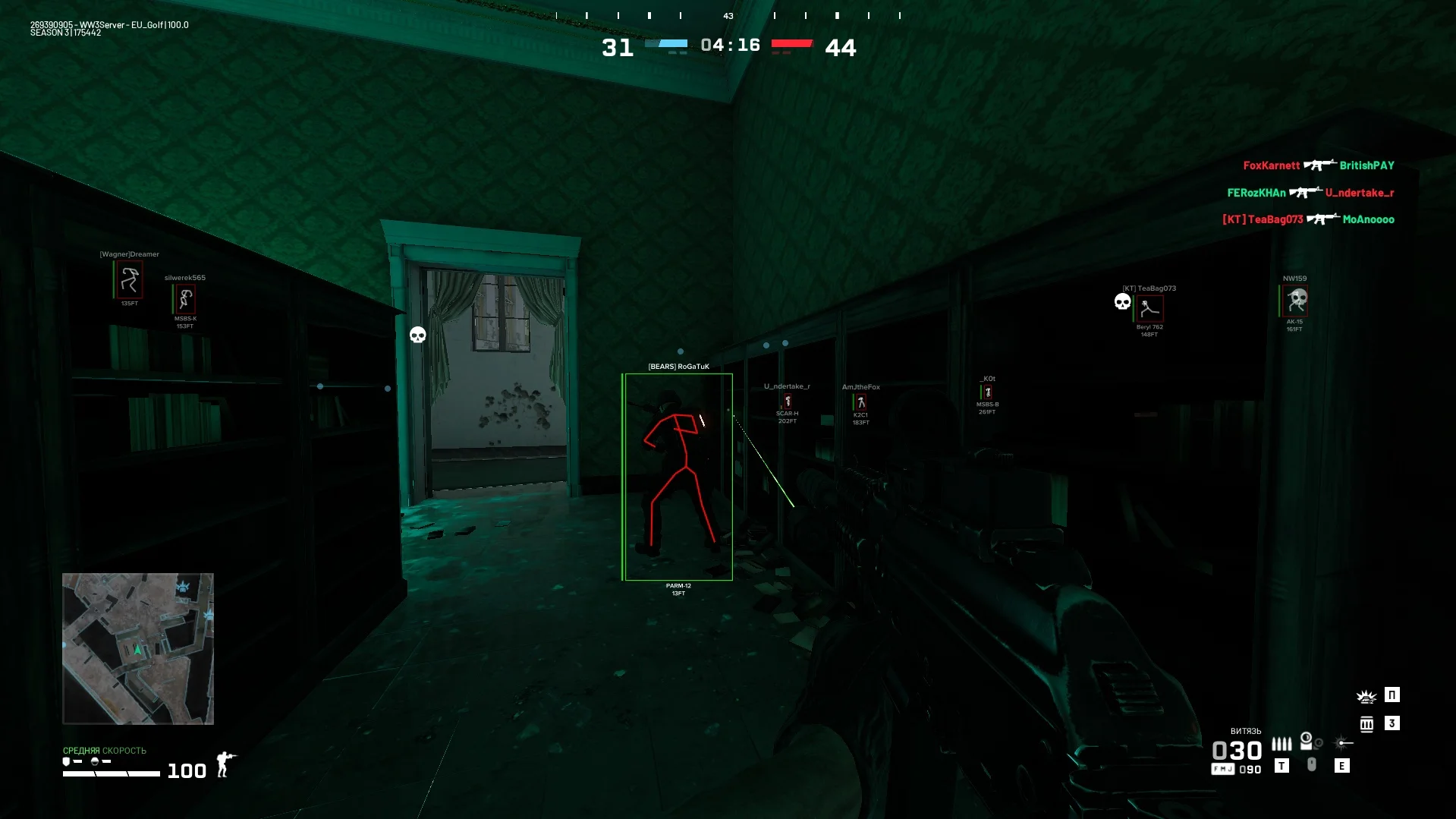 Найти стабильно работающий софт для этой игры непросто, но Fecurity уверенно занимает свою нишу благодаря высокому качеству исполнения, защите и стабильности. Главная особенность продукта — уникальный метод обхода античита, который значительно снижает риск блокировки и позволяет играть спокойно, не беспокоясь за свой аккаунт. В арсенале есть точный аимбот с возможностью активации режима Silent, обеспечивающего максимально легитную и плавную игру. Также предусмотрен информативный ESP (ВХ), который отображает противников, союзников и полезные объекты на карте, включая элементы окружения и снаряжение. Чит имеет приятное и простое меню, не садит FPS и отлично оптимизирован под разные конфигурации ПК. Fecurity регулярно обновляется под новые версии WW3, сохраняя стабильность, безопасность и актуальность. Если вы искали надёжное решение для World War 3 — это ваш шанс. Попробуйте Fecurity и ощутите уверенность в каждом бою!